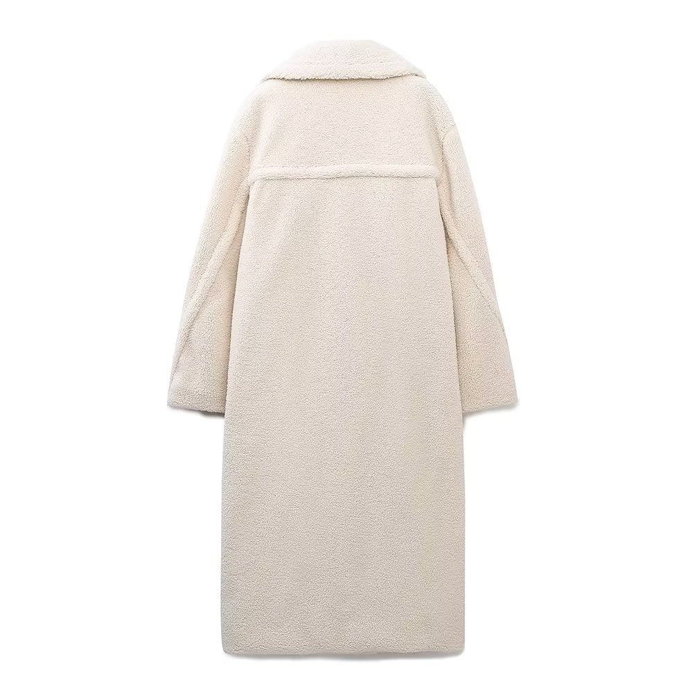 Autumn And Winter New Women's Solid Color Casual Long Lamb Wool Coat