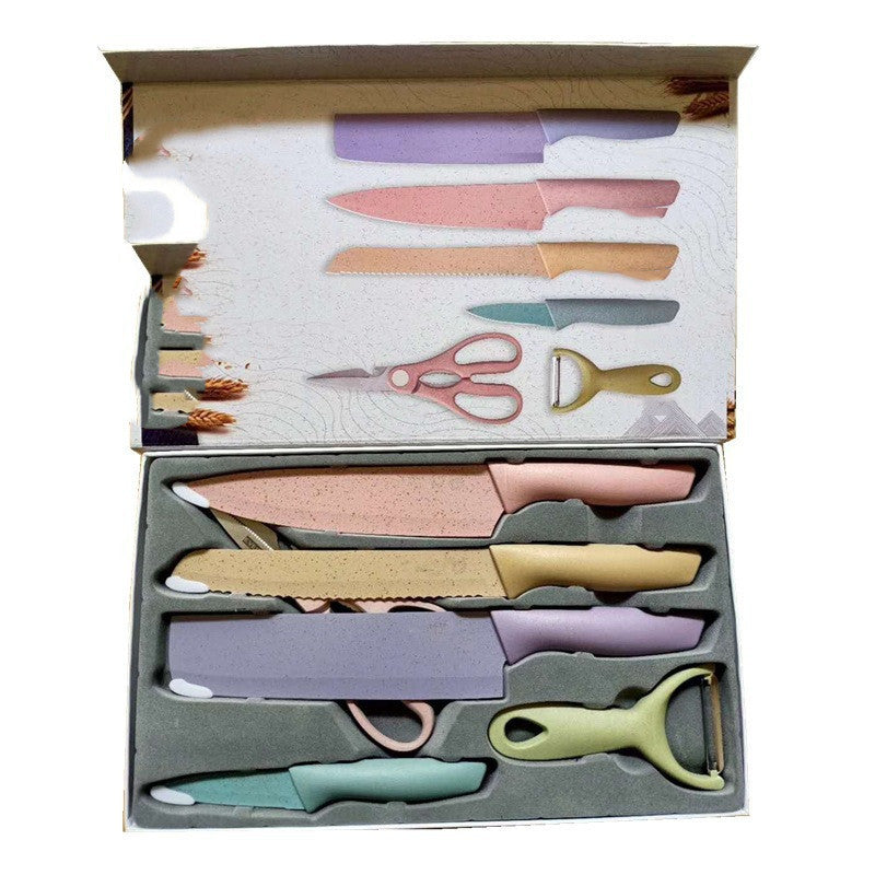 Wheat Straw 6-piece Set Of Colorful Chef Cooking Gift Set Of Knives