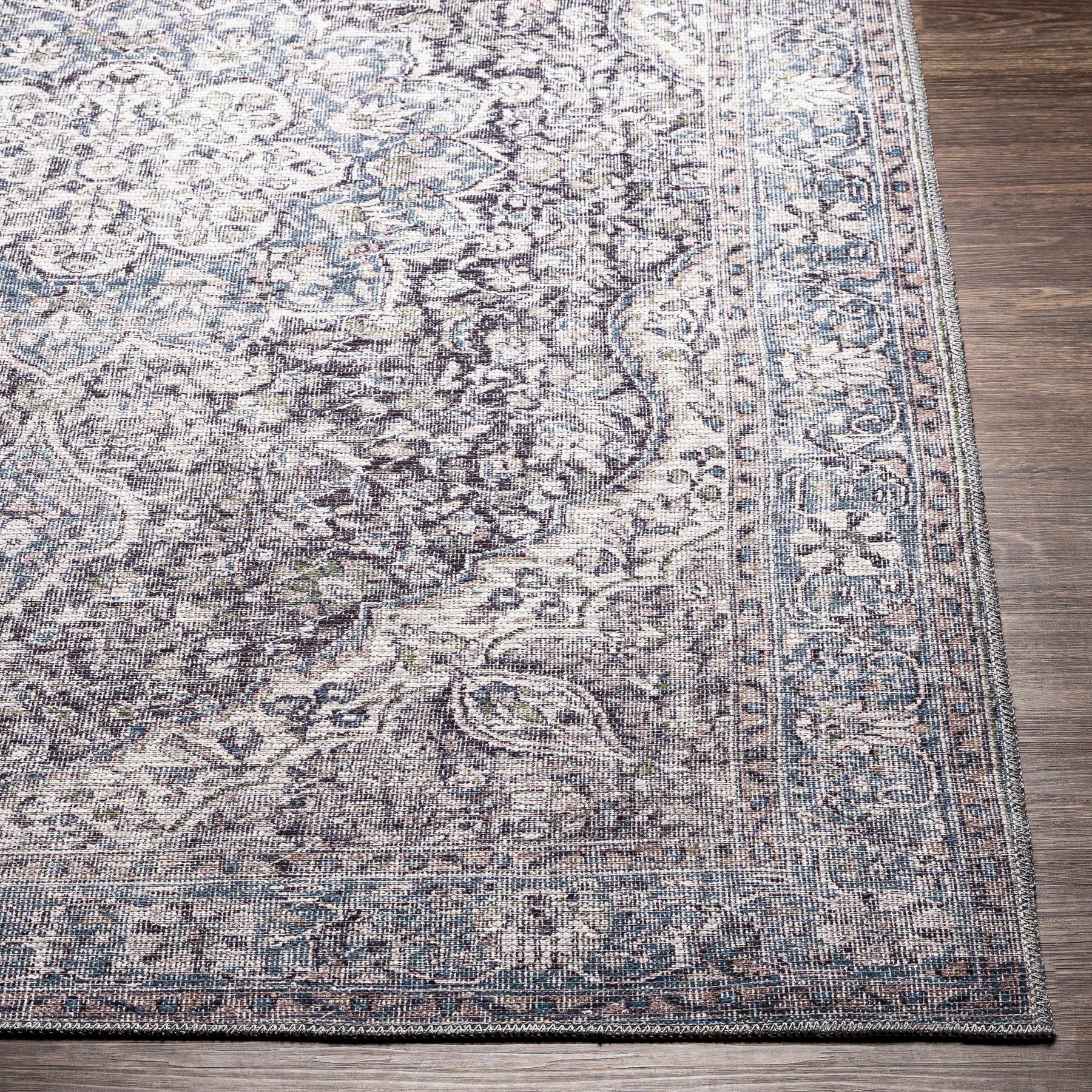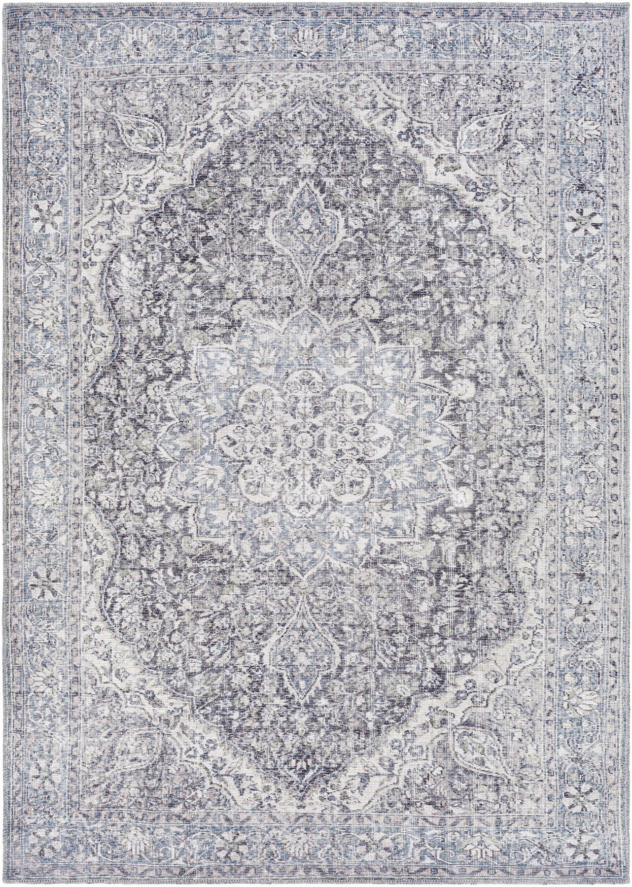 Tavas Blue Medallion Washable Rug
