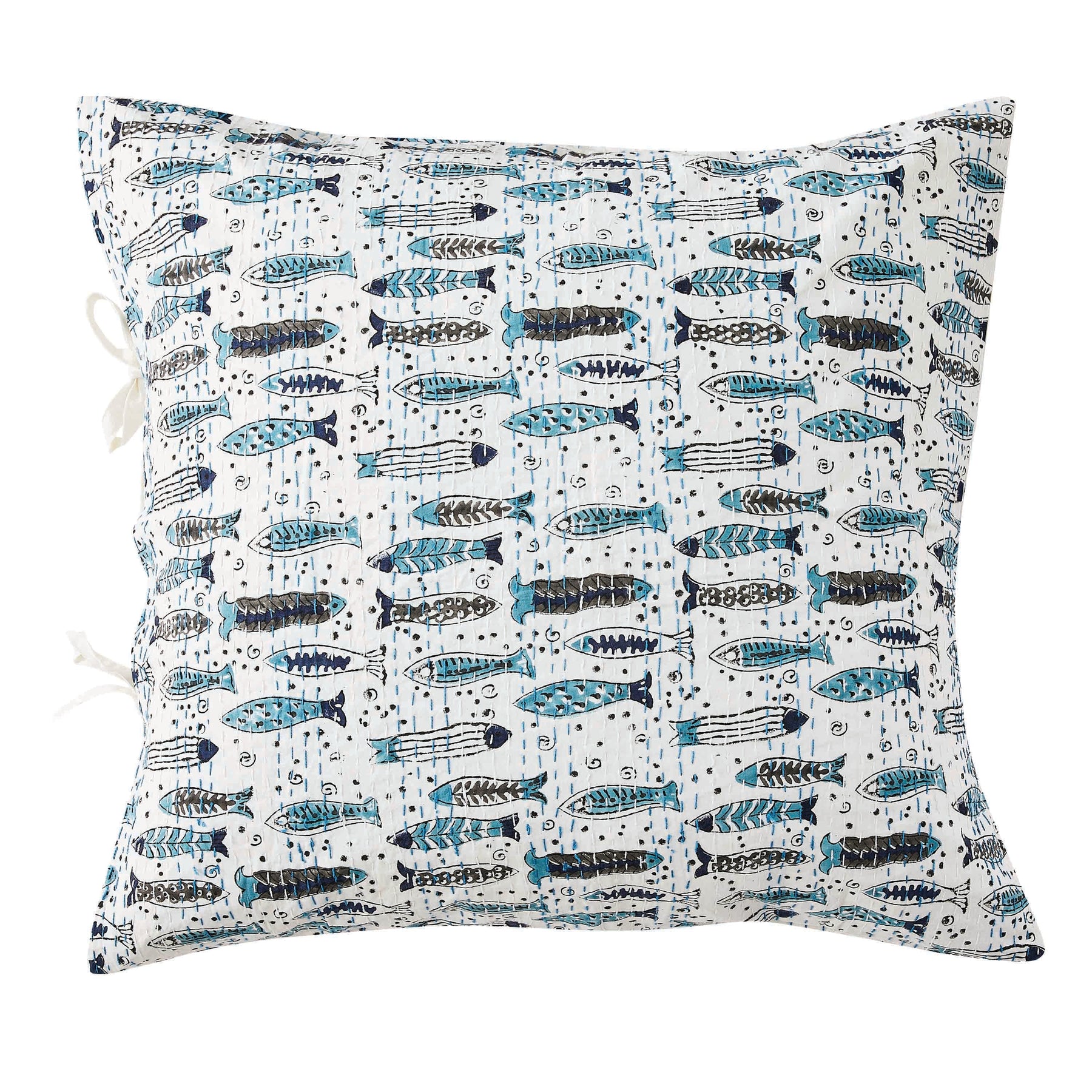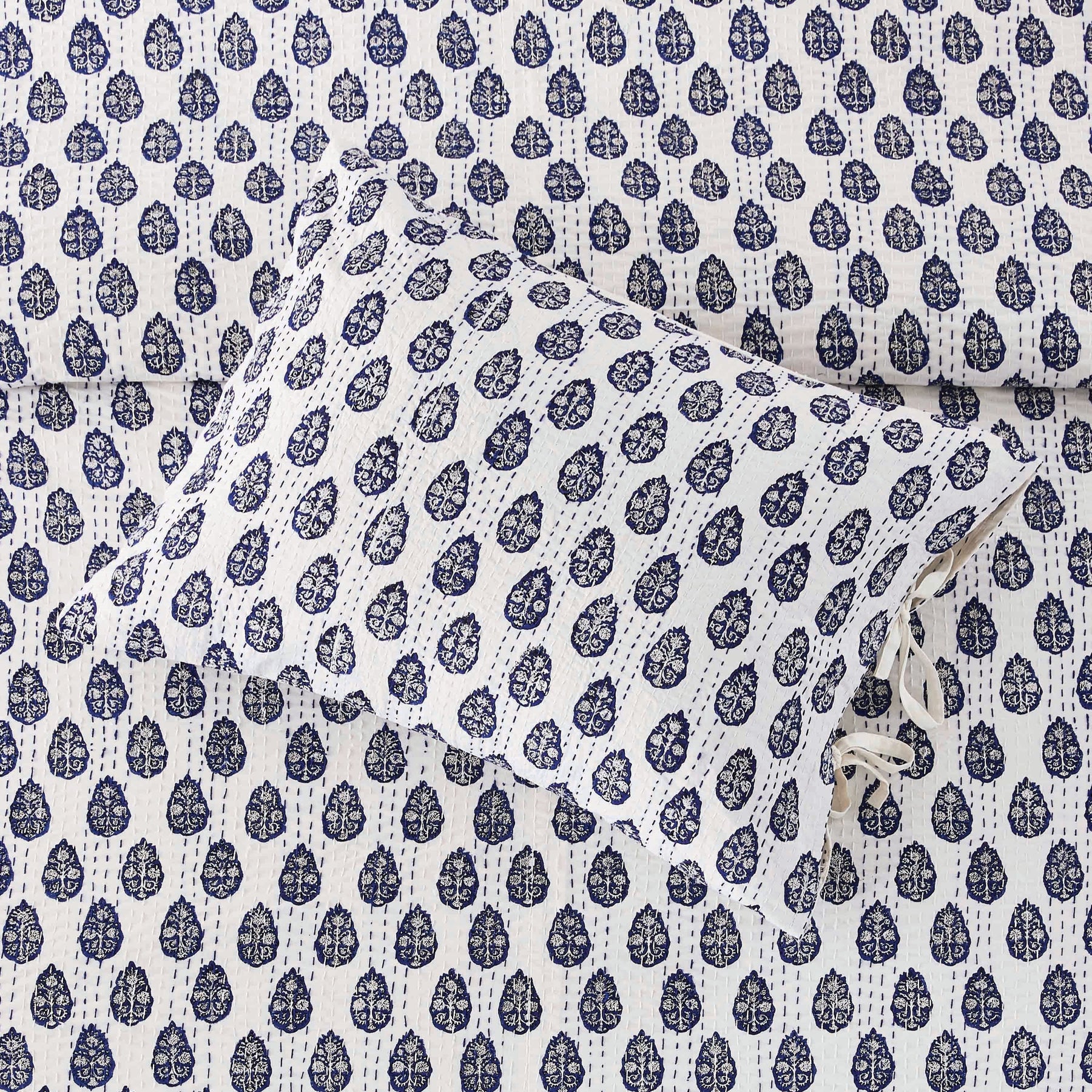 Hand Stitched Block Print Kantha Pillow Sham Pairs