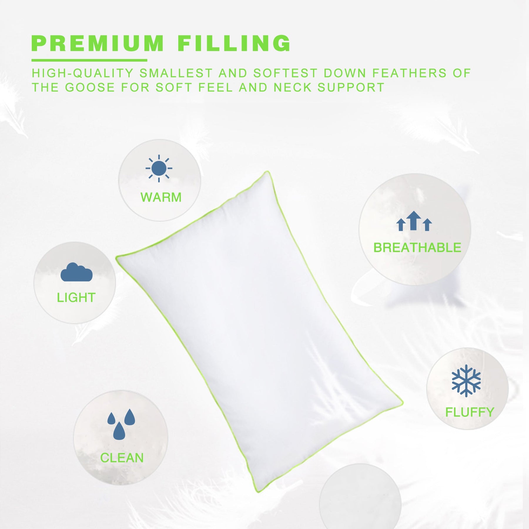 Kasentex Silky Green Piped Edge Goose Down Feather Pillow Set, White