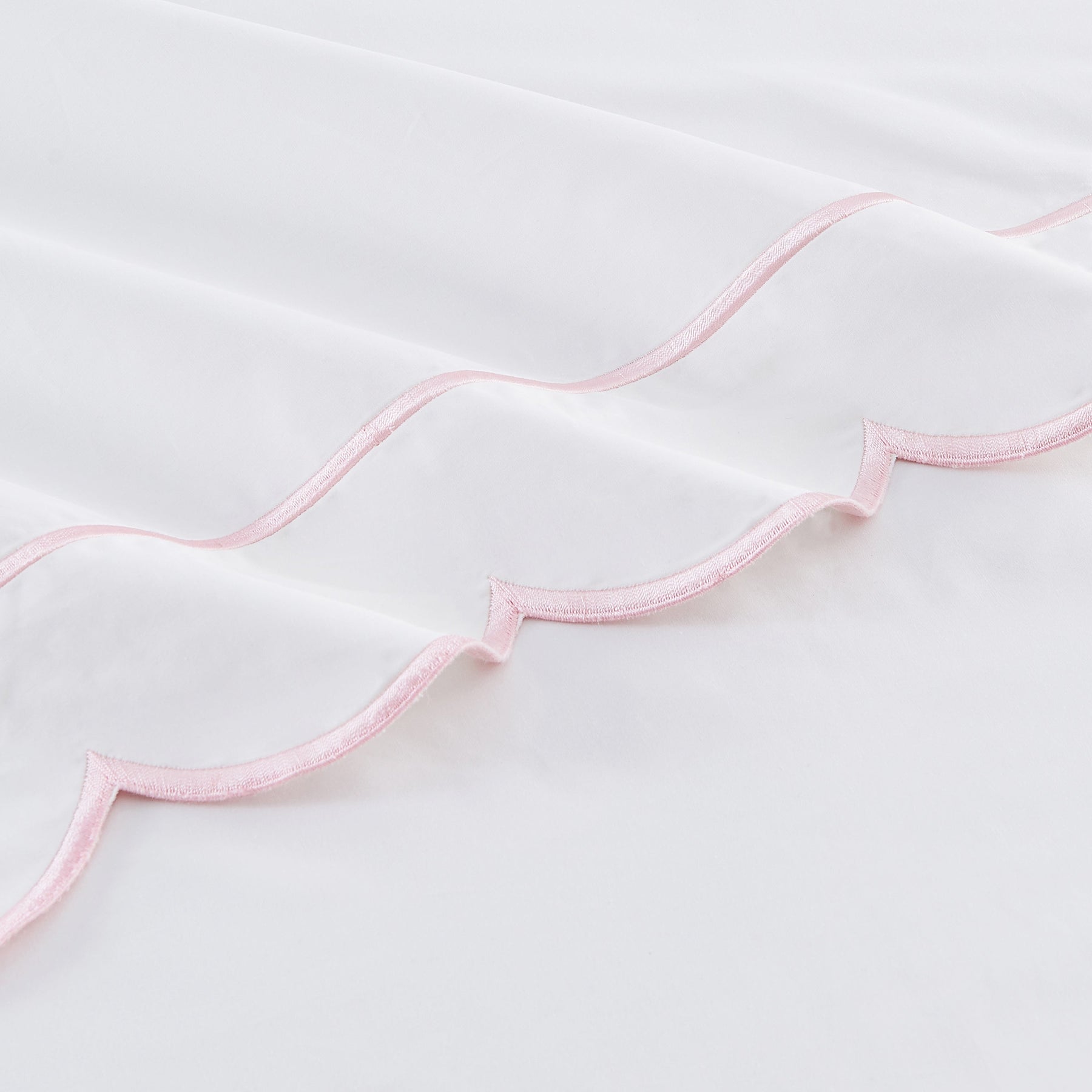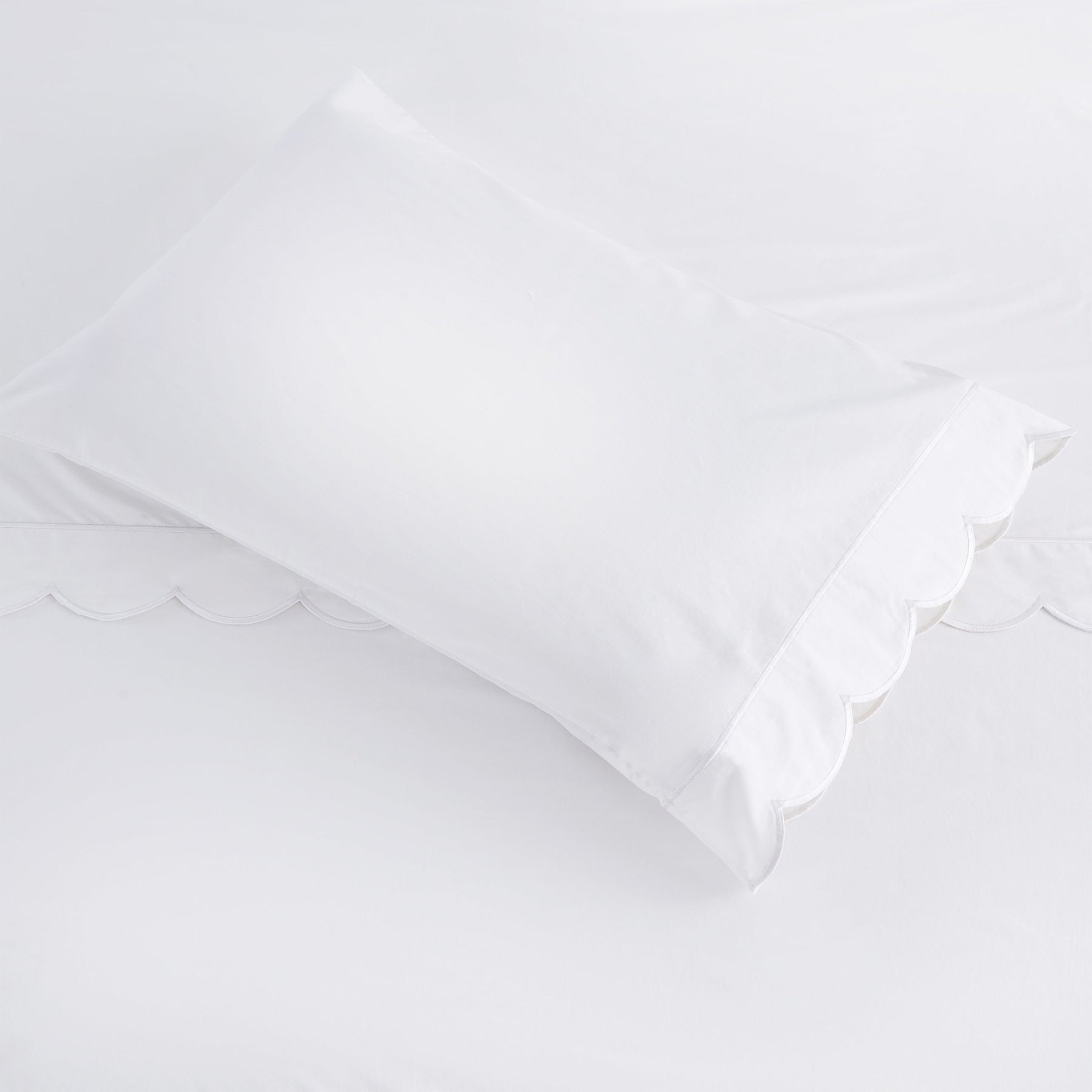 Scallop Frame Embroidered Cotton Percale Pillowcase Pair