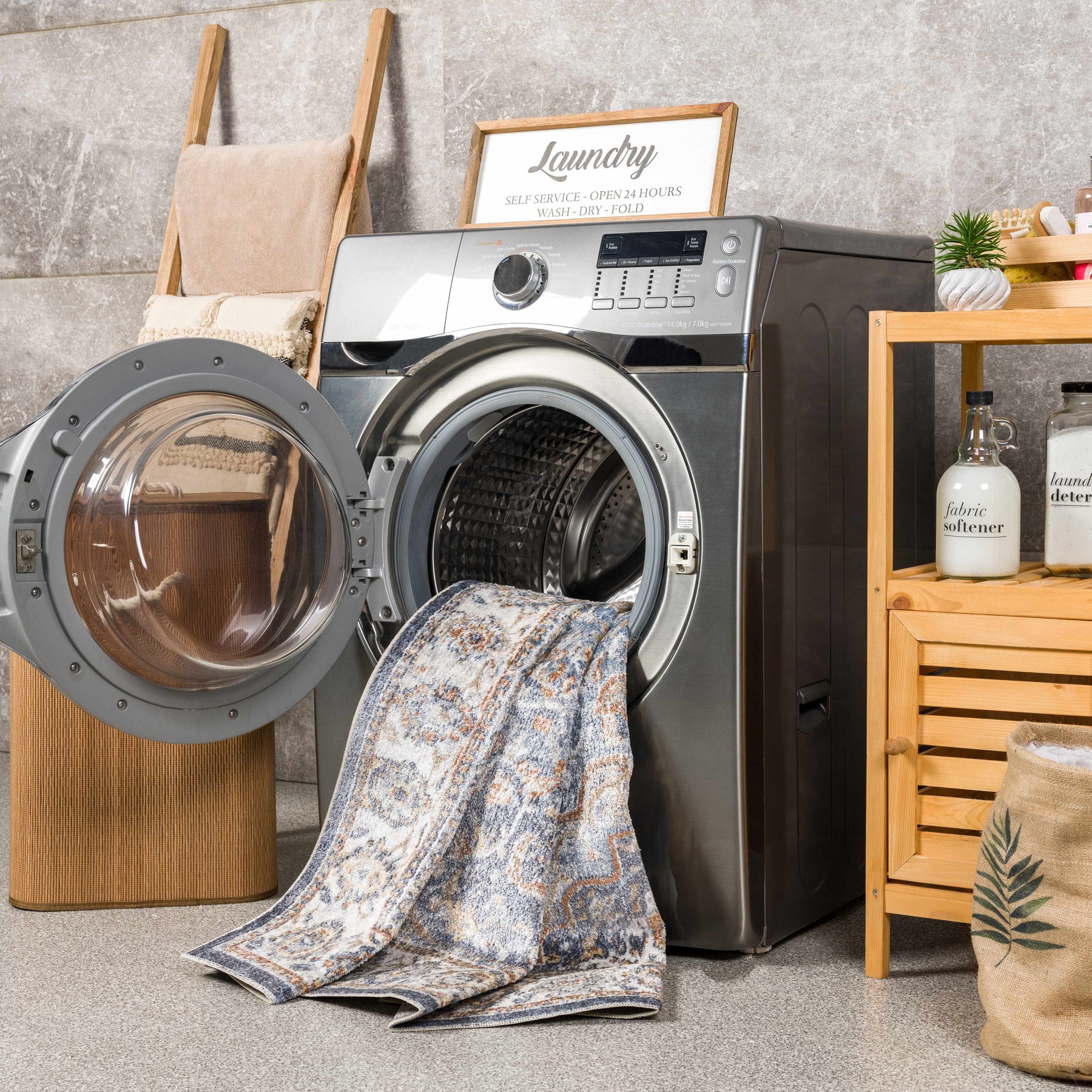 Aurum Blue & Beige Washable Area Rug