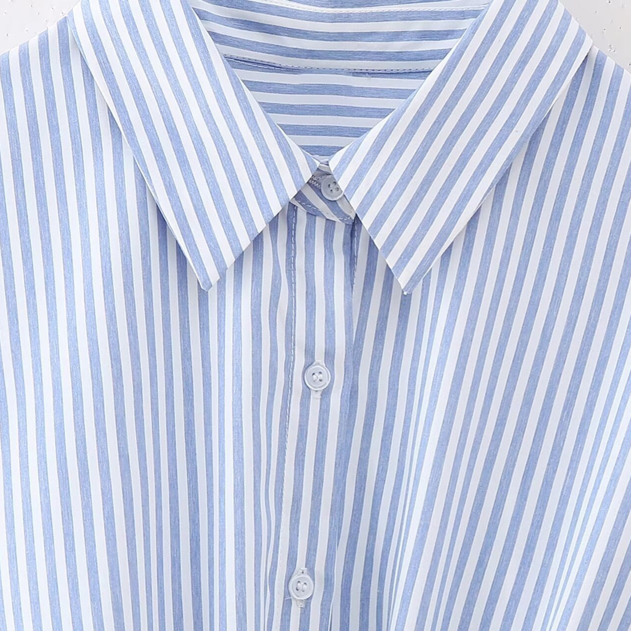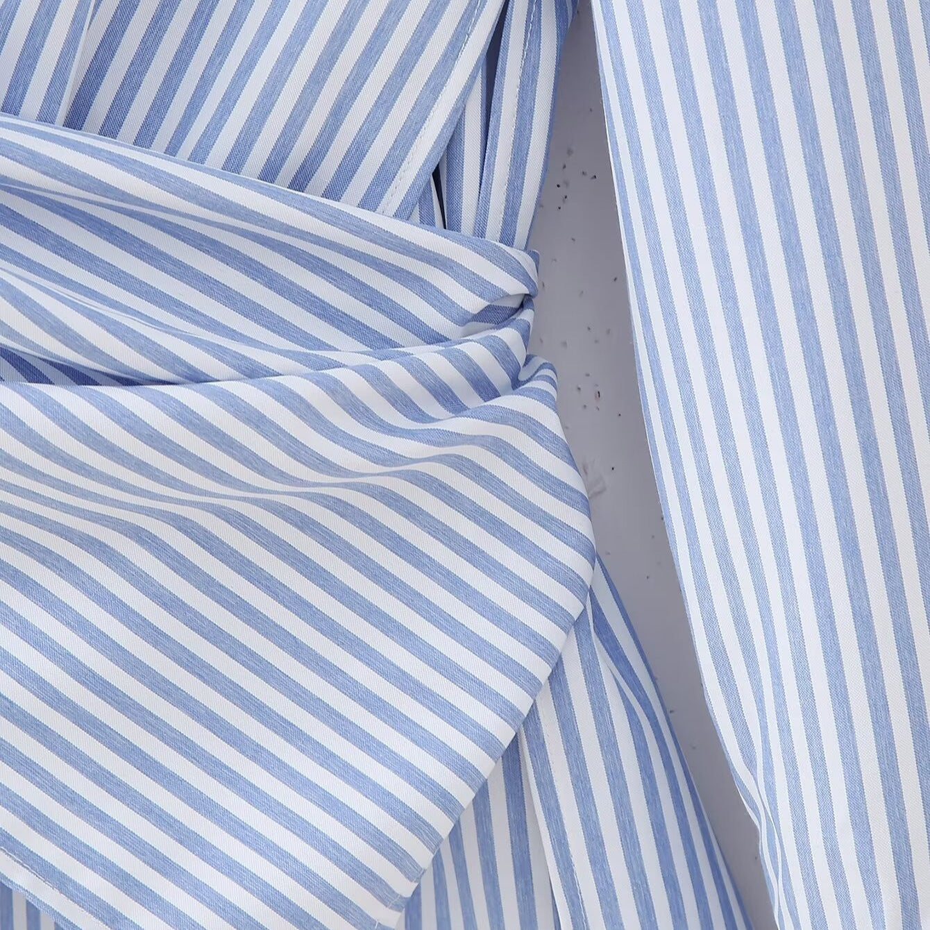 Fashion Loose Striped Lace-up Multi-color Long Sleeve Shirt
