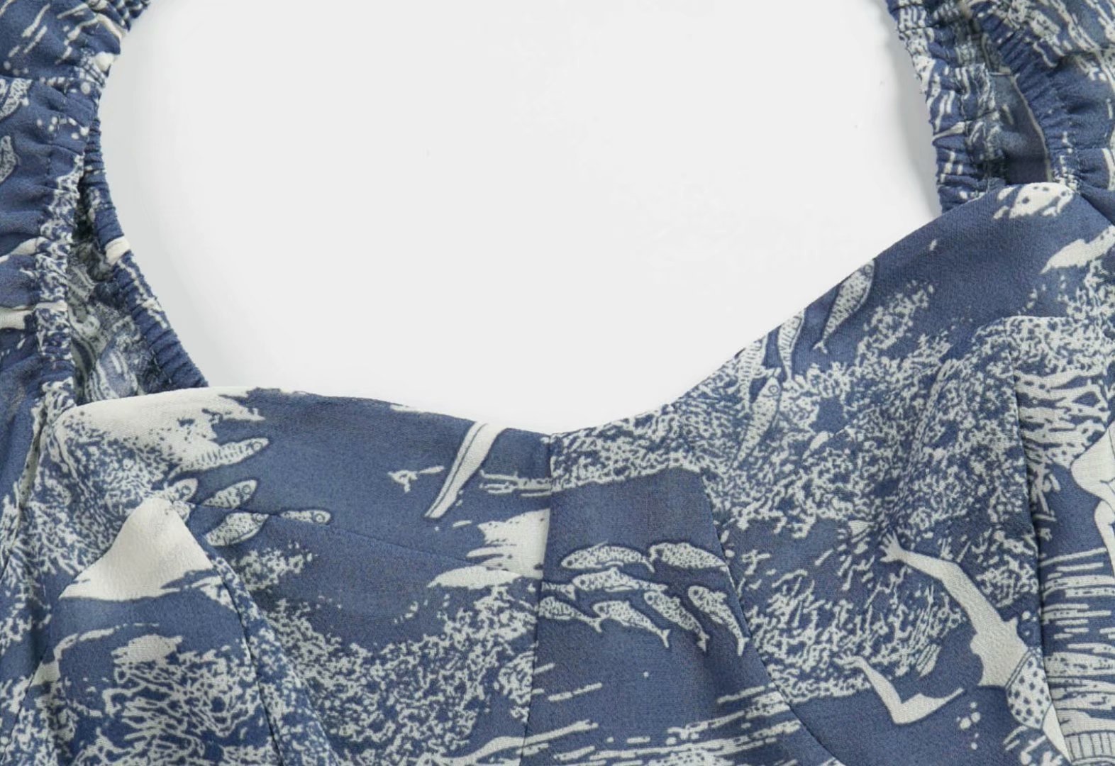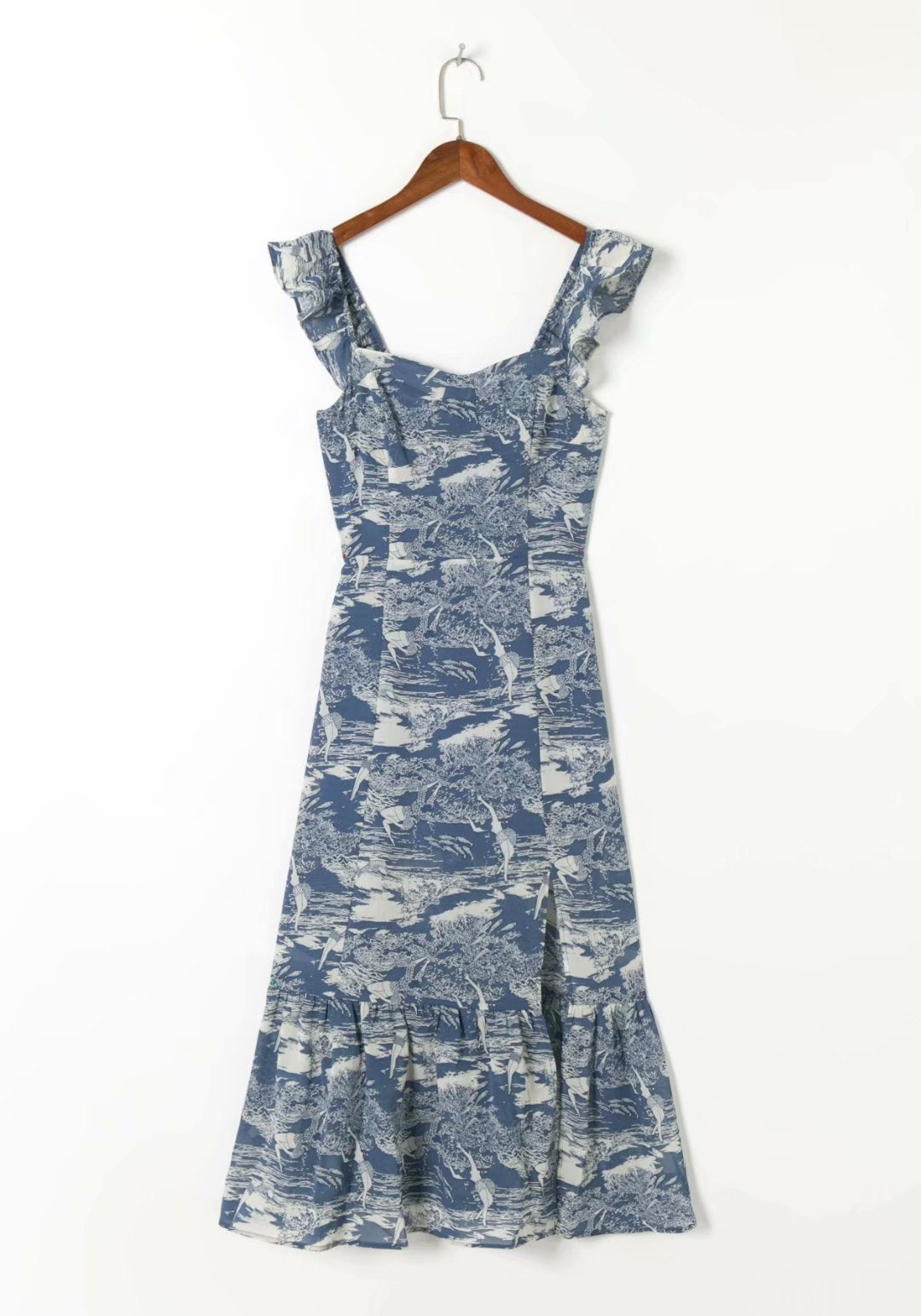 French Vintage Ruffled Shoulder Strap Slim Fit Slimming Slit Sling Dress