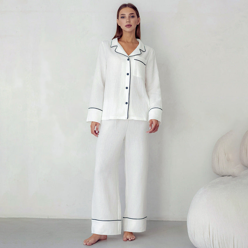 Simple And Comfortable Cardigan Pajamas Two-piece White Pocket Long Sl