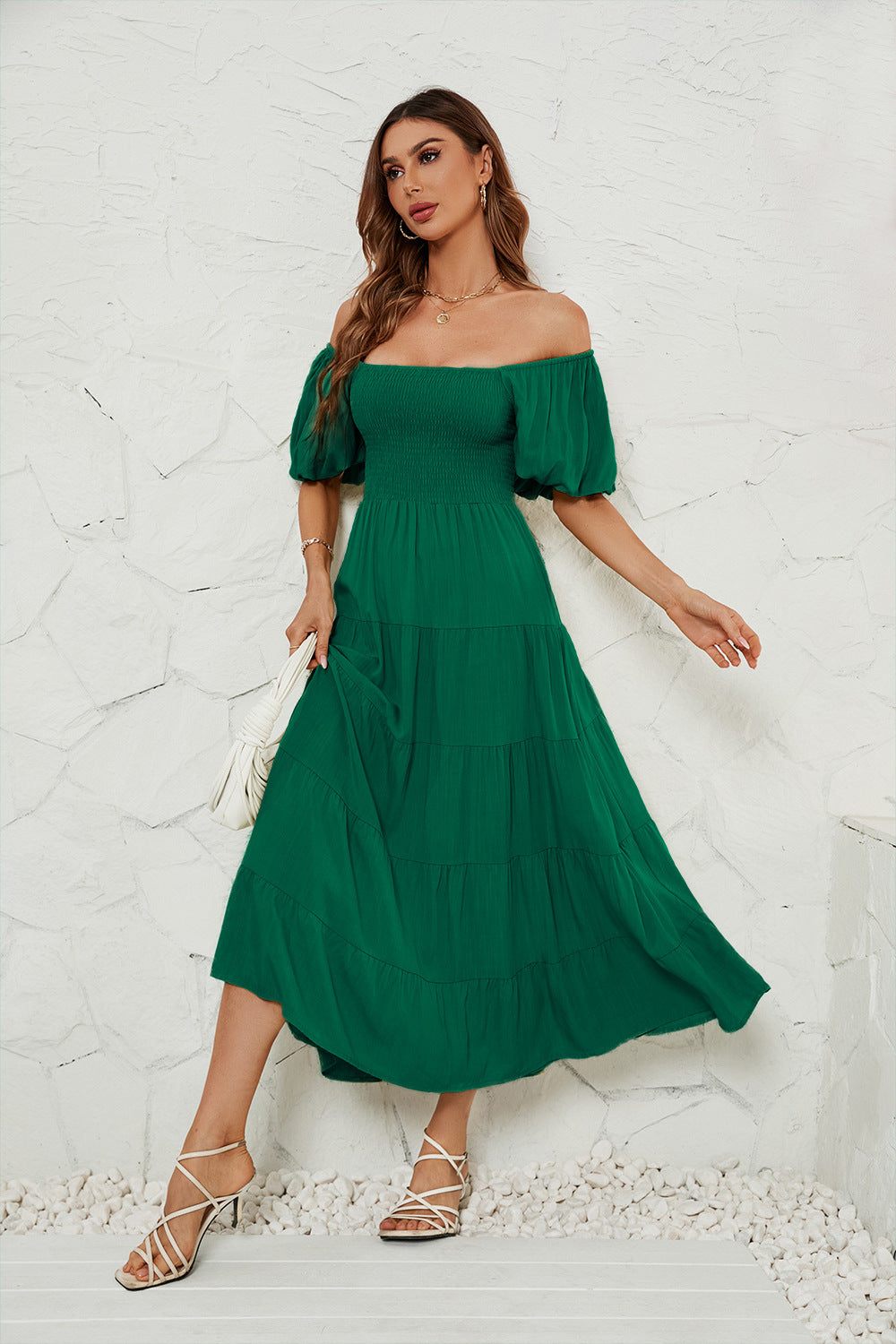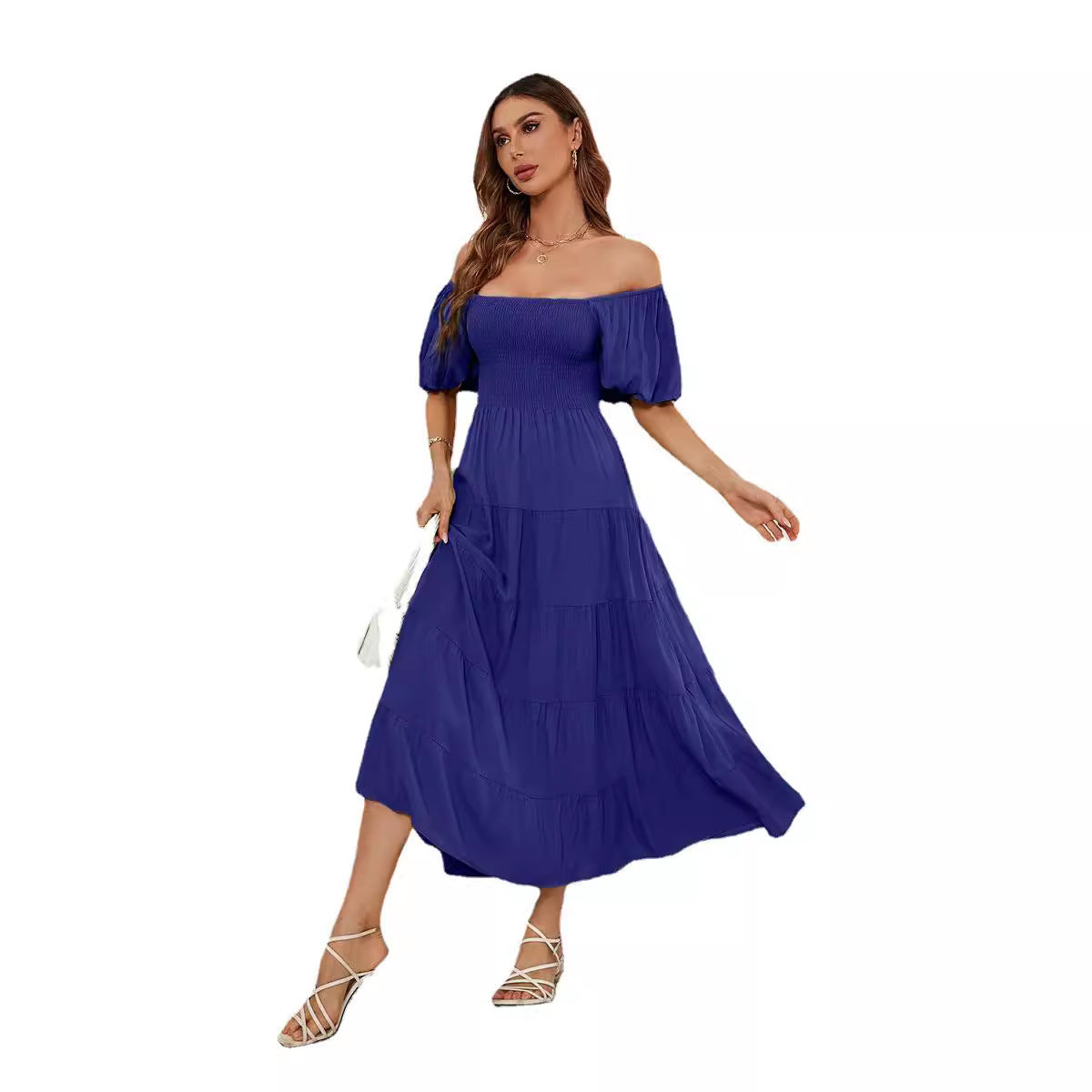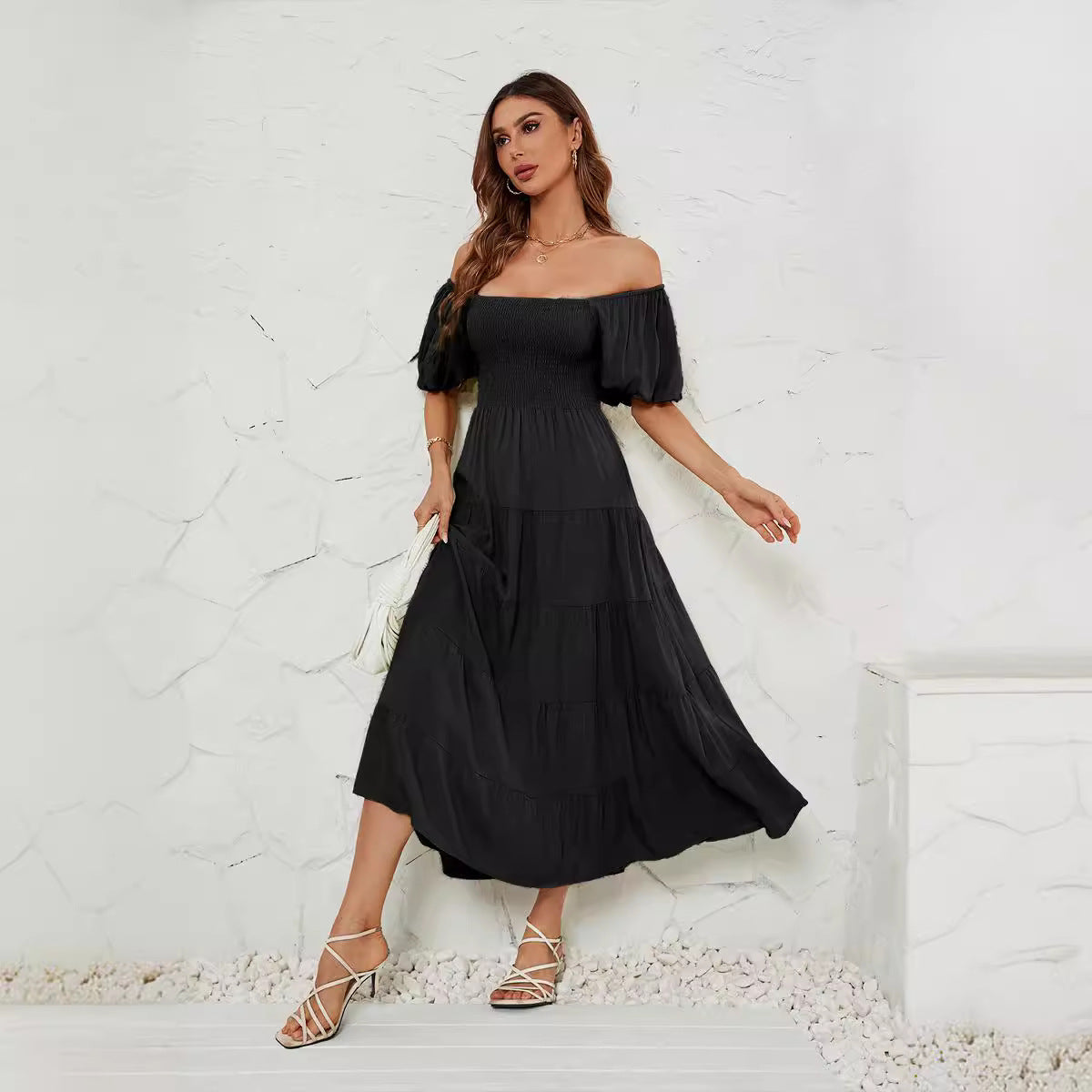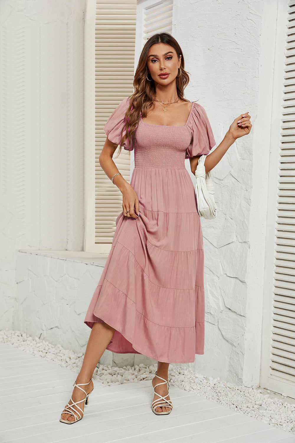 Summer Square Collar Backless Puff Sleeve Dress Women