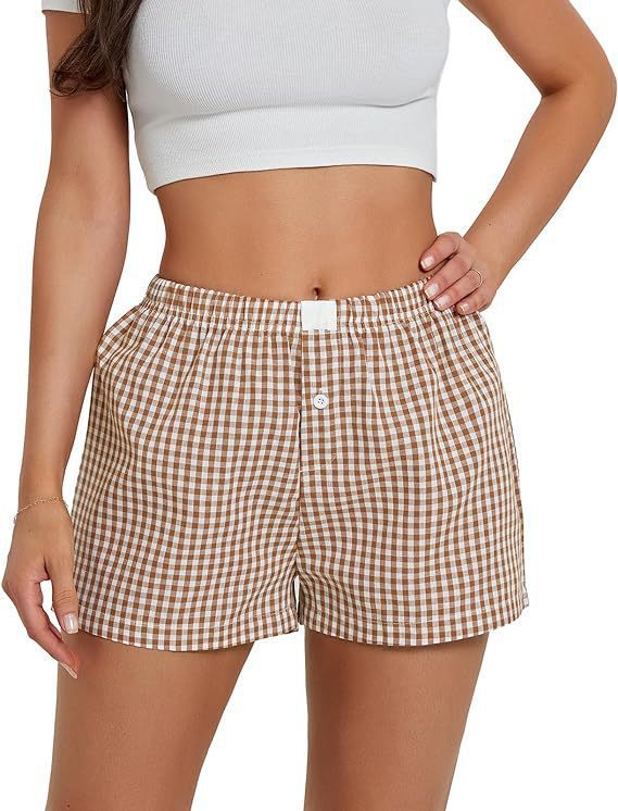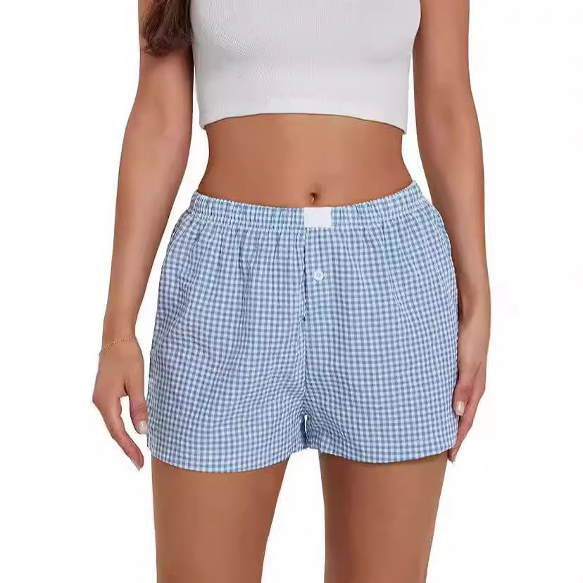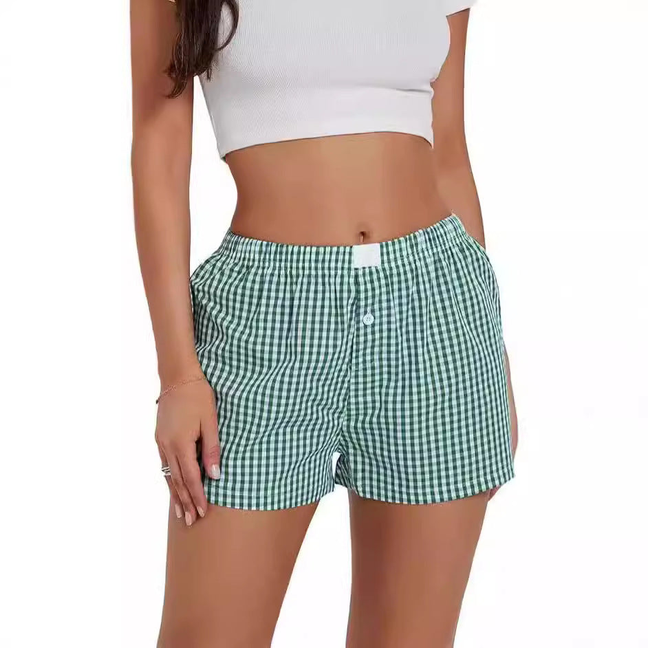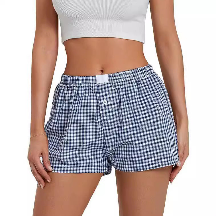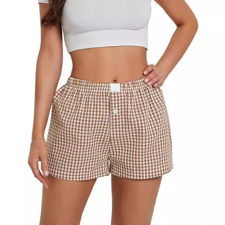 Vacation Simple Plaid Beach Shorts Women's Loose Casual Pants