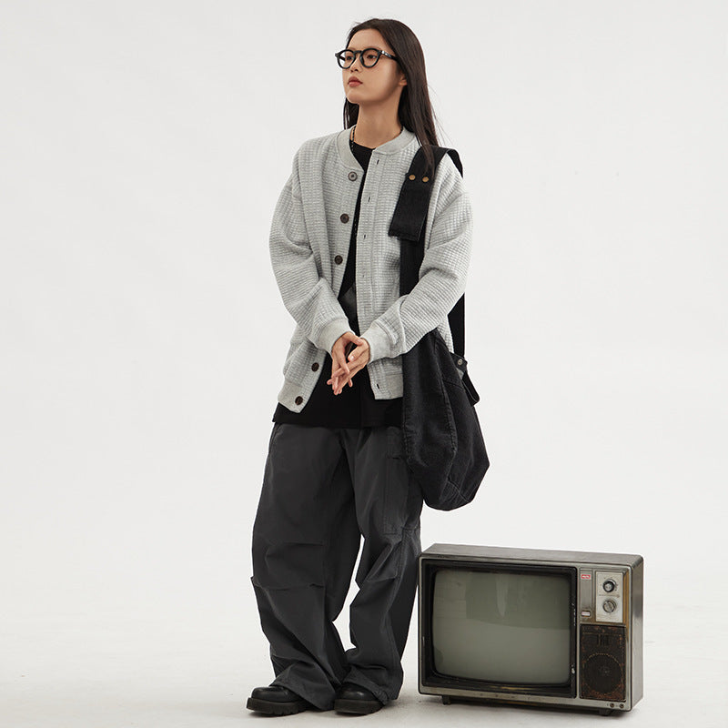 Waffle Cardigan Coat Design Loose Leisure All-matching Couple Sweater